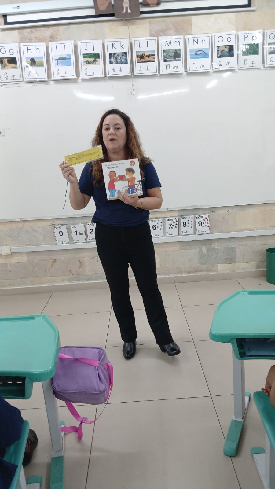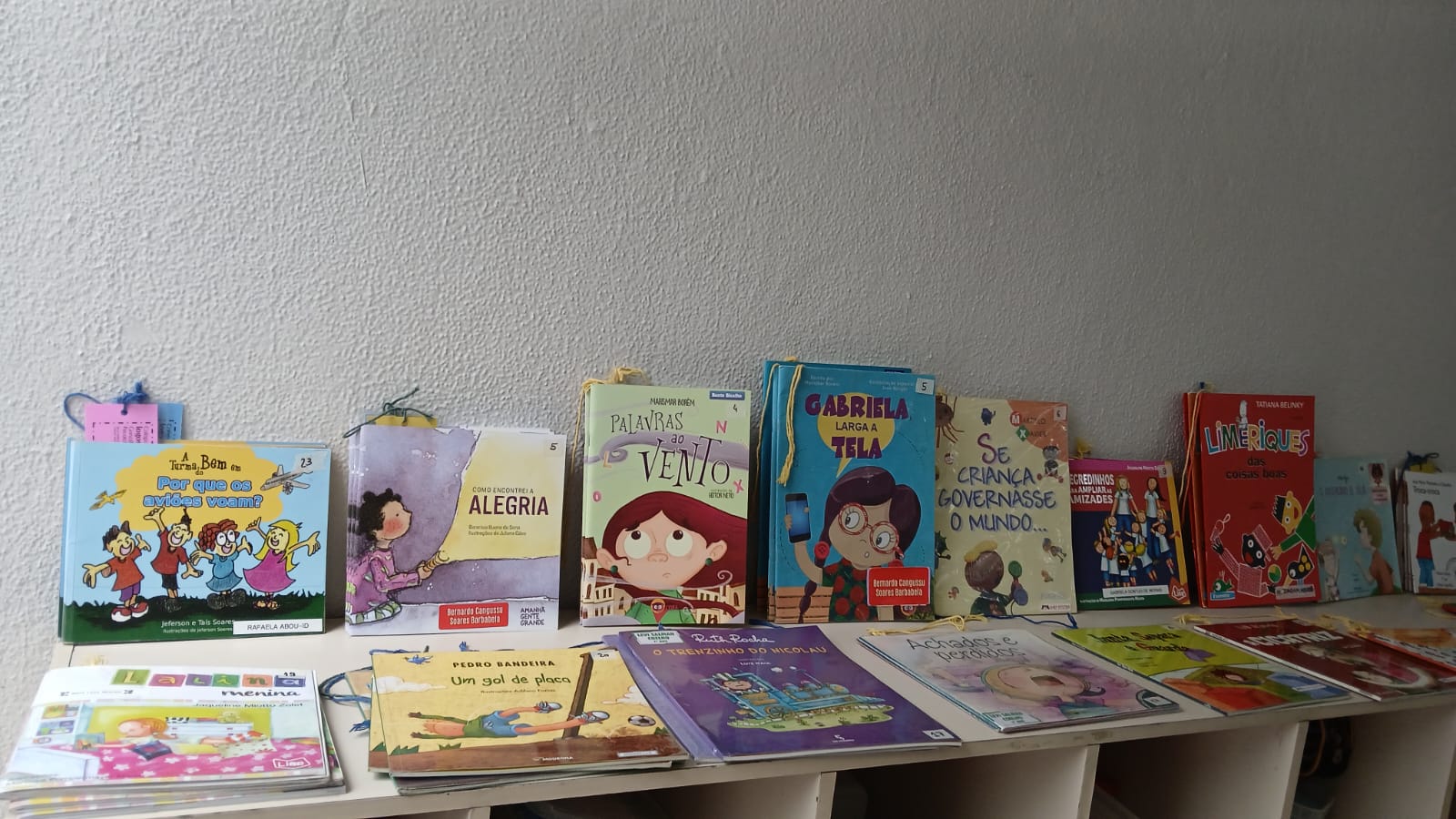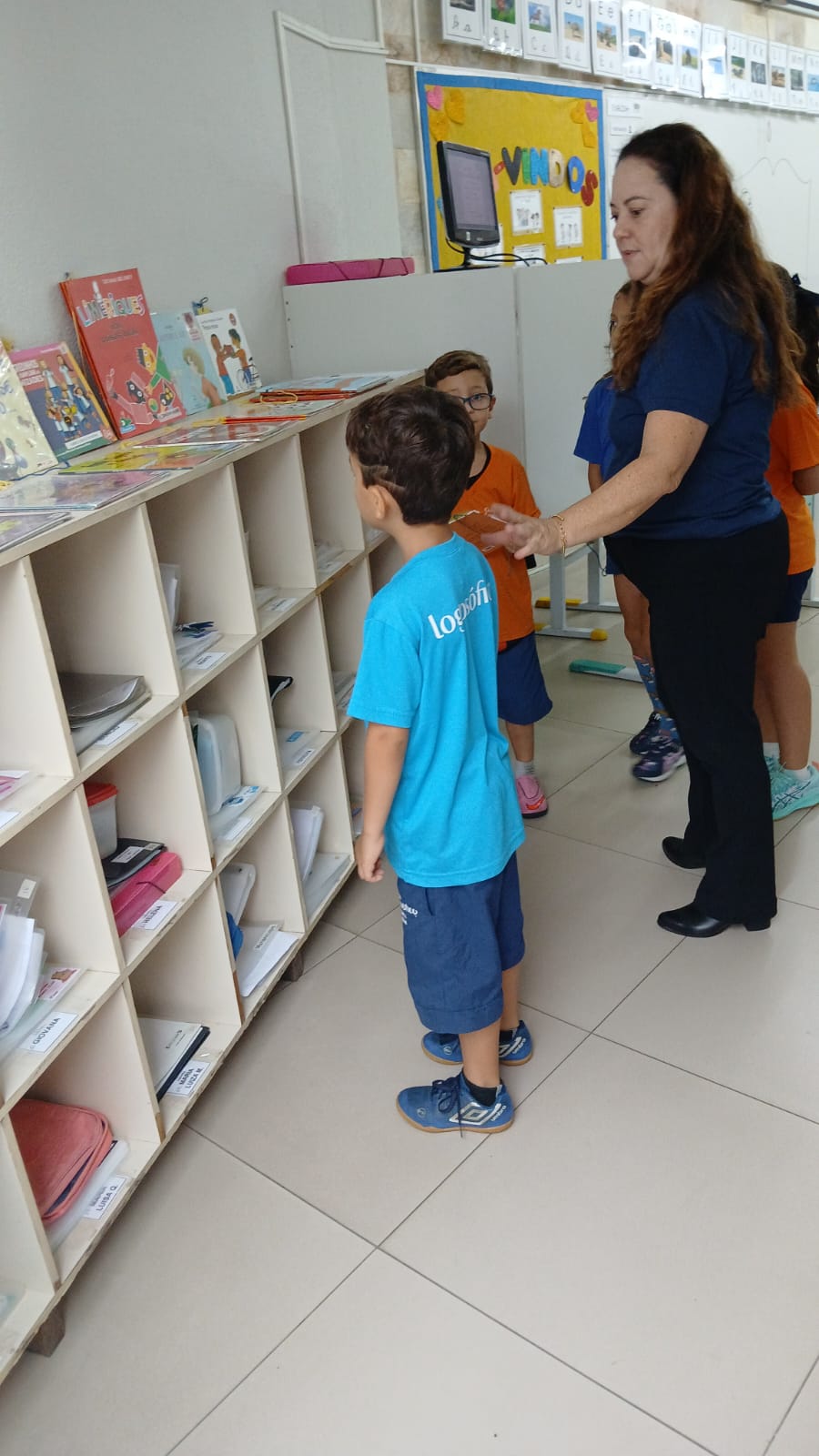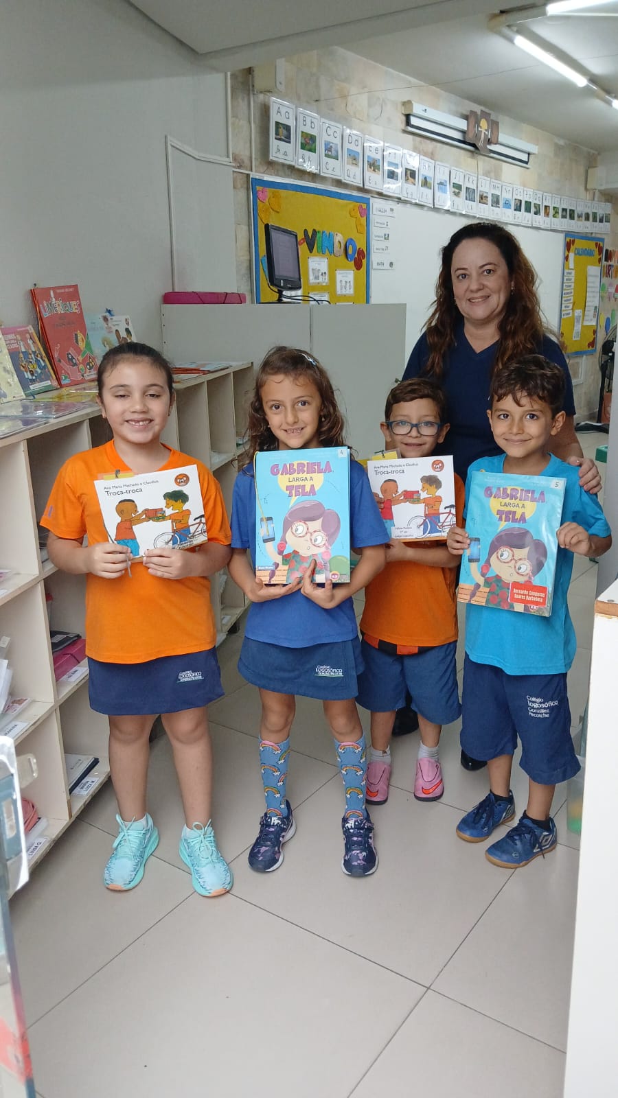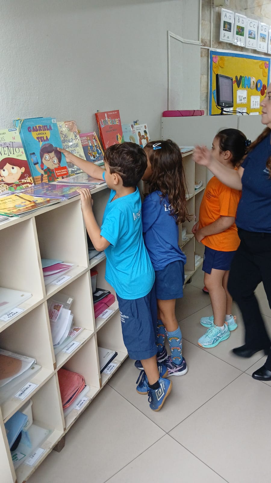 A sala conta com um acervo cuidadosamente selecionado, adequado à faixa etária dos alunos, proporcionando contato com diferentes histórias e ampliando o repertório literário das crianças.