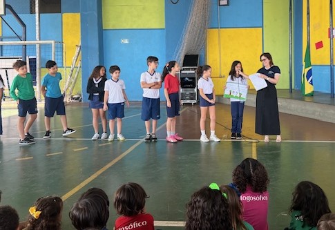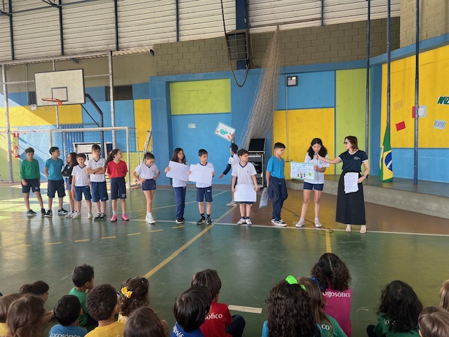 Com entusiasmo e sensibilidade, a turma preparou uma apresentação para compartilhar com outras turmas do colégio tudo o que aprendeu. Durante o momento, também deram dicas práticas de como ampliar e fortalecer esse sentimento tão importante, que une as pessoas e promove a paz.
