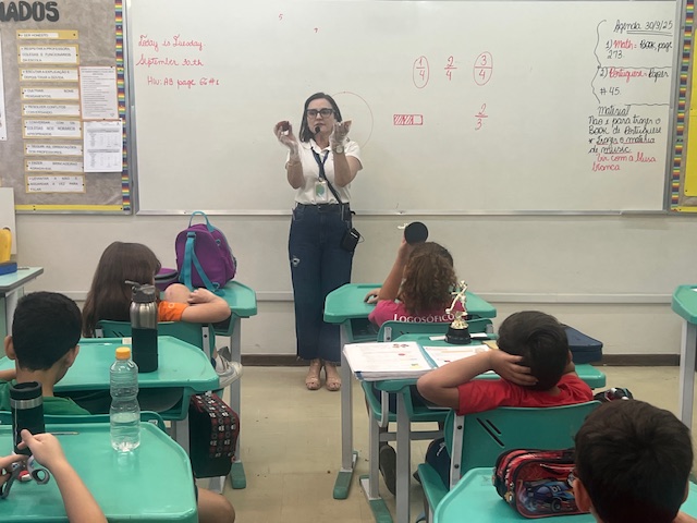 Os alunos do 4º Ano estão estudando o conceito de fração. Aprenderam que dividir um inteiro em partes iguais é um conhecimento essencial para a matemática e para a vida!