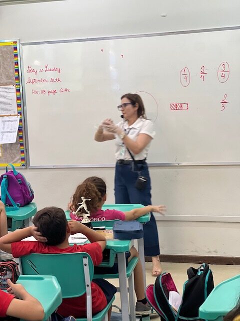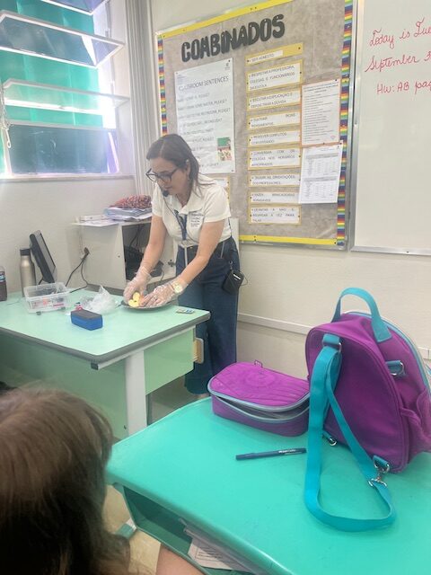 Para tornar esse aprendizado ainda mais claro e interessante, as professoras organizaram uma atividade especial na sala de aula: levaram maçãs para demonstrar, de forma prática, como funciona a divisão do inteiro em frações. A cada corte, os alunos puderam visualizar como são nomeadas essas partes e compreender como as frações fazem parte do nosso cotidiano.