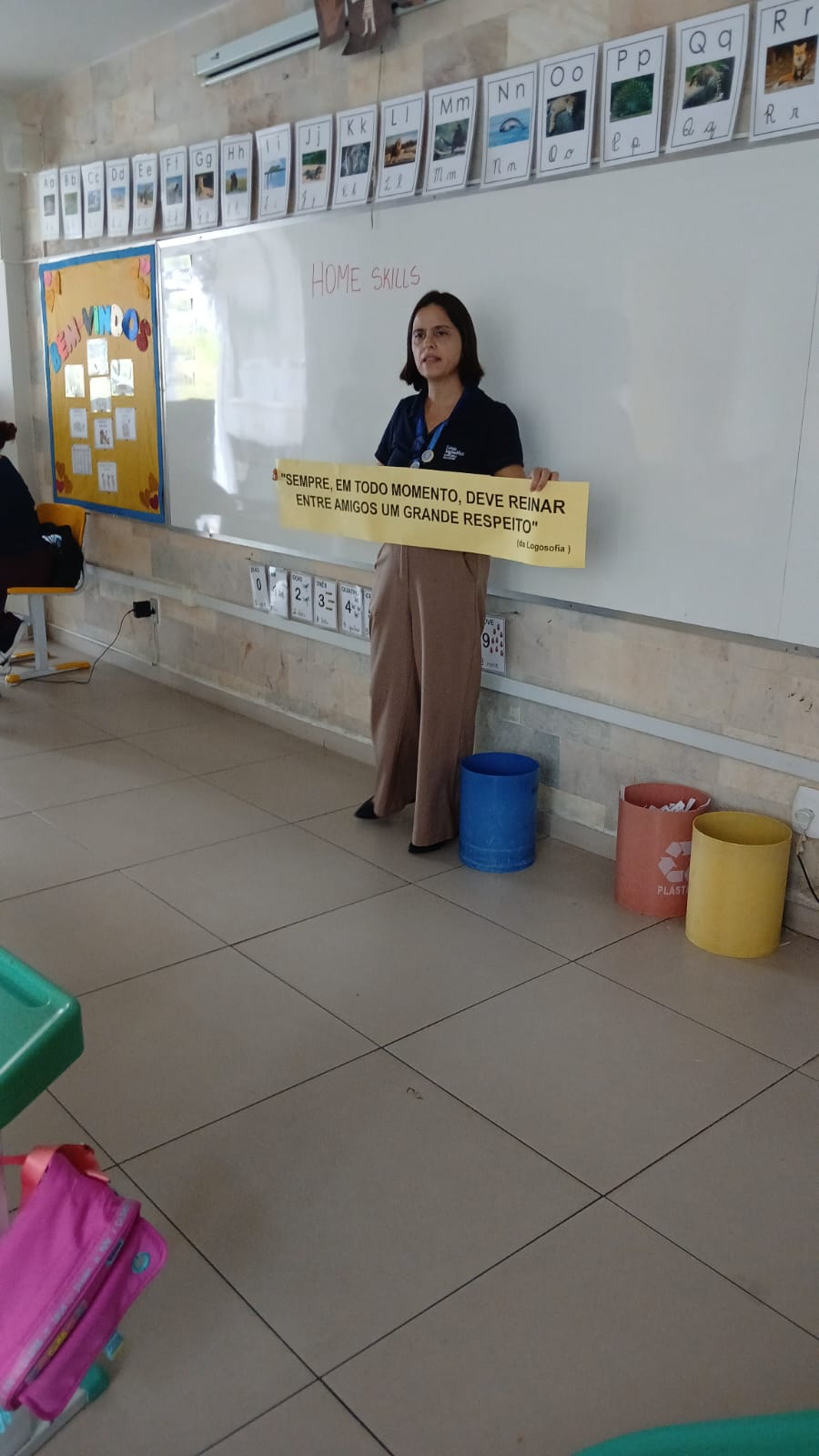 Ao final, cada aluno registrou atitudes de respeito que se compromete a cultivar na escola, tornando a atividade não apenas reflexiva, mas também um convite concreto à ação.