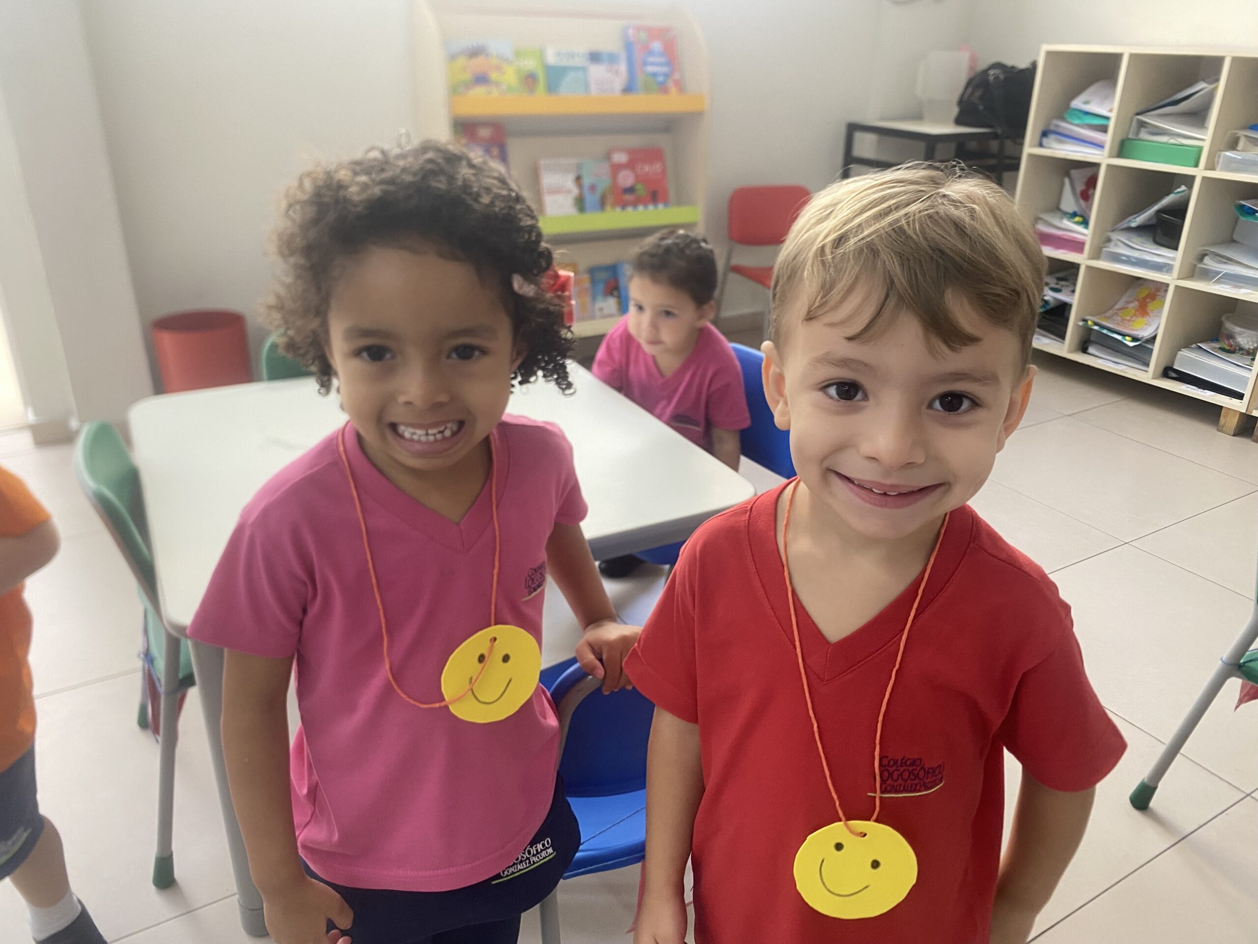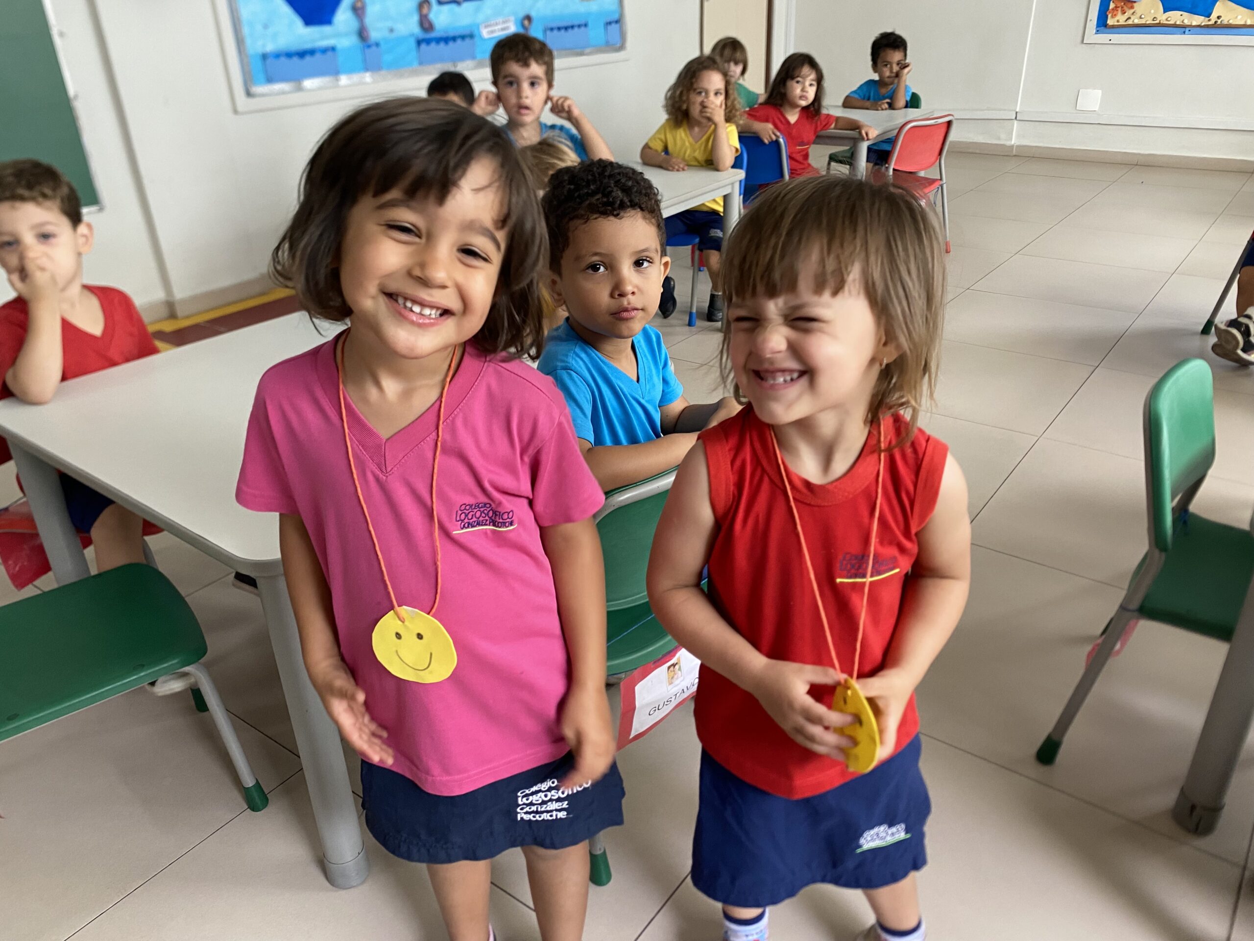 Diariamente, dois alunos são escolhidos como os “colaboradores do dia” e recebem um colar que representa essa bela missão. Durante o dia, eles ajudam nas tarefas cotidianas da sala, como puxar a fila, entregar as agendas e as garrafinhas dos colegas, sempre com gestos simples e cheios de significado.