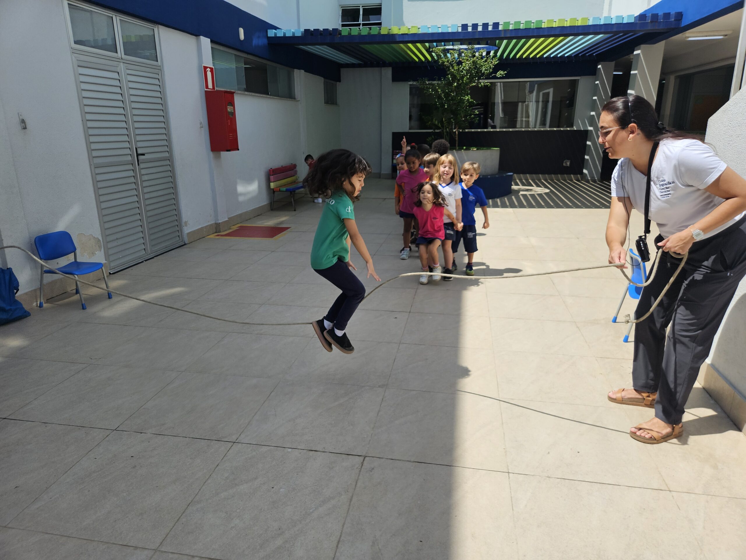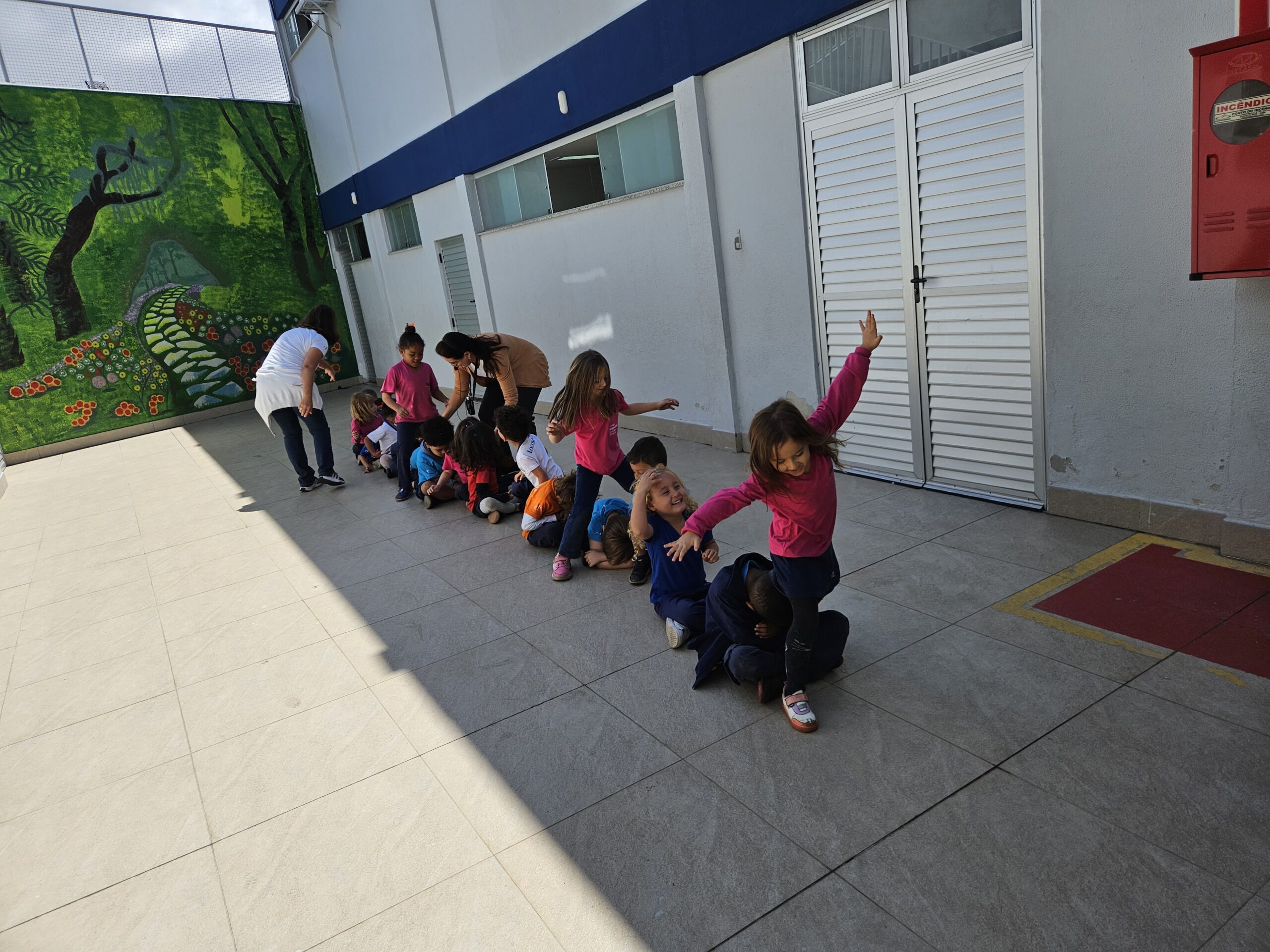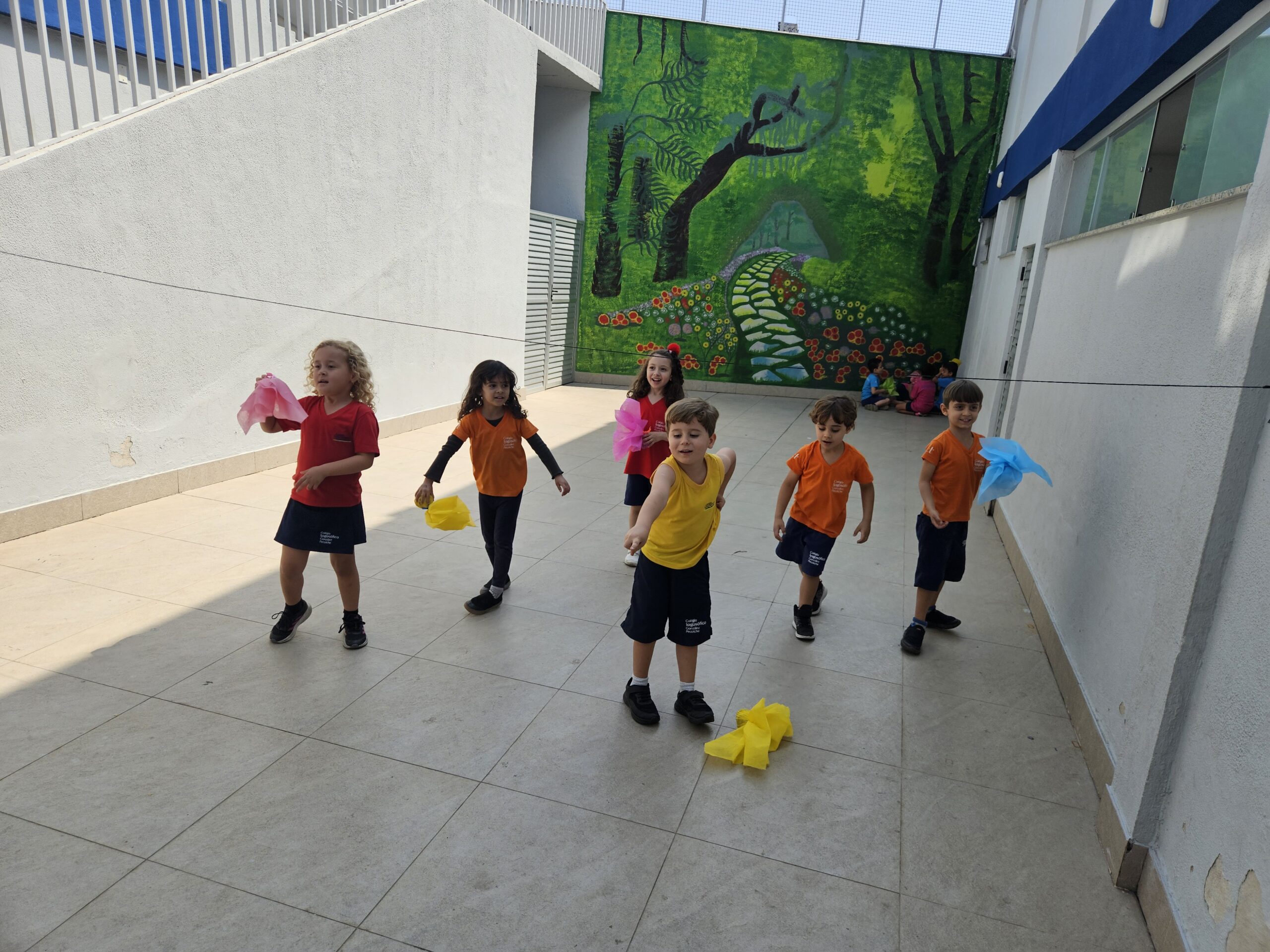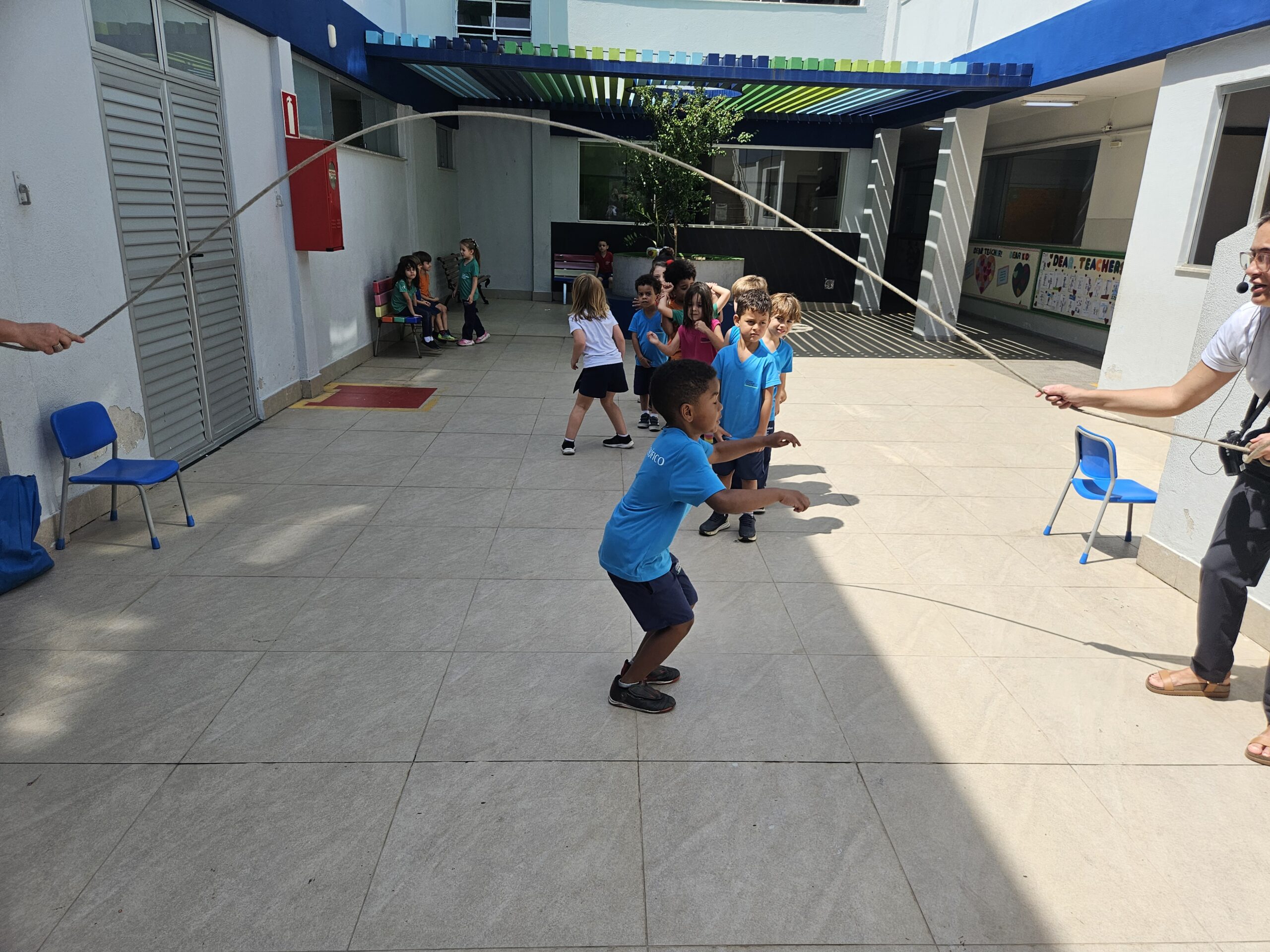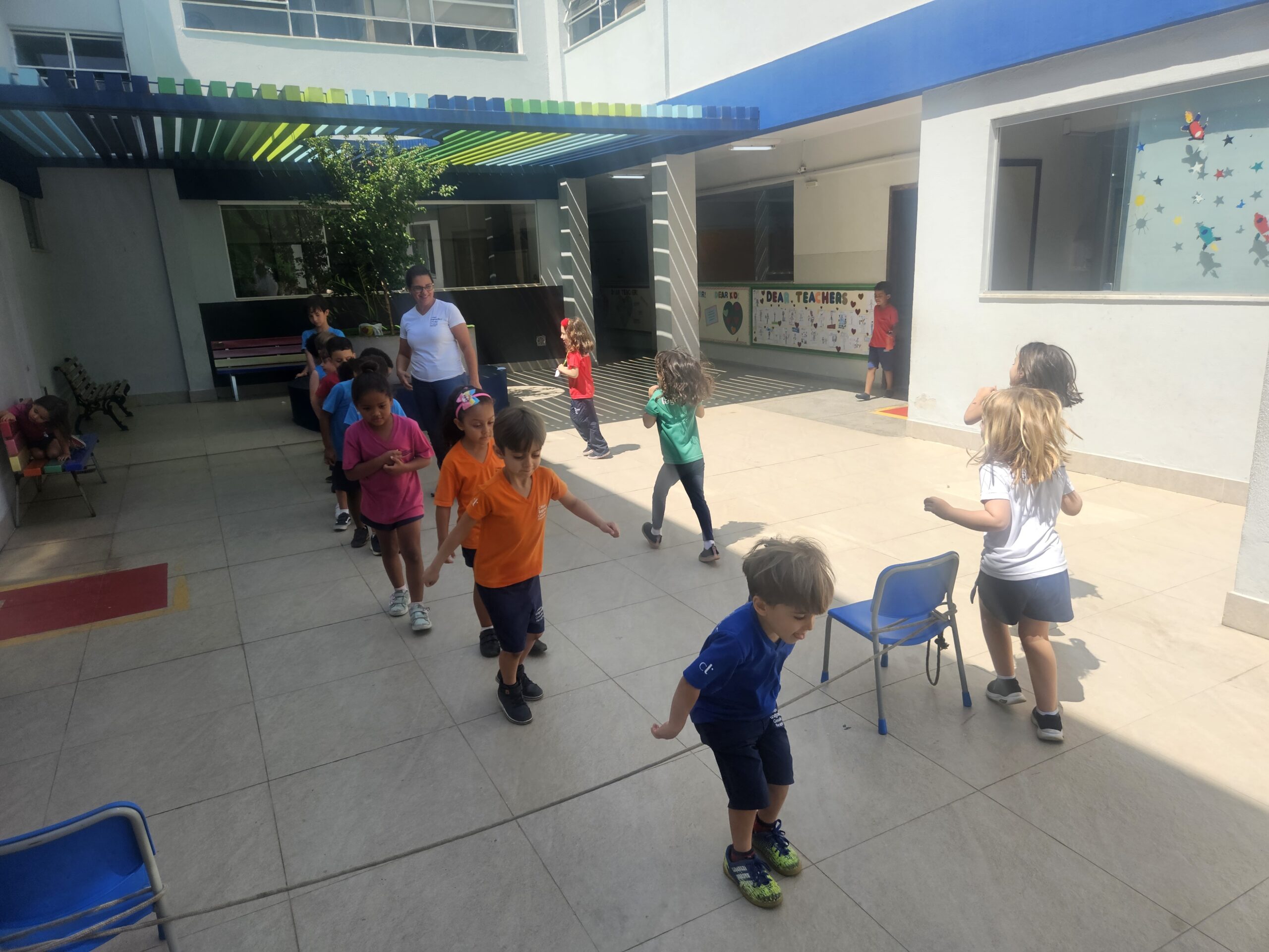 A turma do Infantil 4 está vivendo momentos cheios de movimento, descoberta e alegria no Projeto Criança e Encontros CLIL (Content and Language Integrated Learning). As atividades propostas pelas professoras Elisiane Souto, Viviane Zanoni e Mrs. Teixeira têm proporcionado experiências lúdicas que unem o aprendizado da língua inglesa, a recordação e a vivência de brincadeiras tradicionais, como Jump Rope, Hide and Seek, Leapfrog e Goose Goose, Duck.