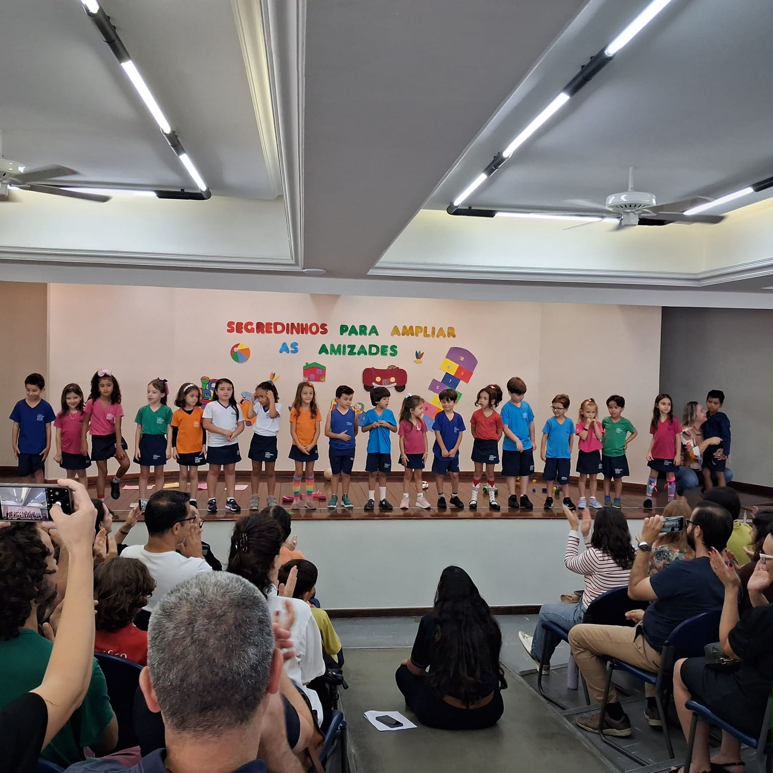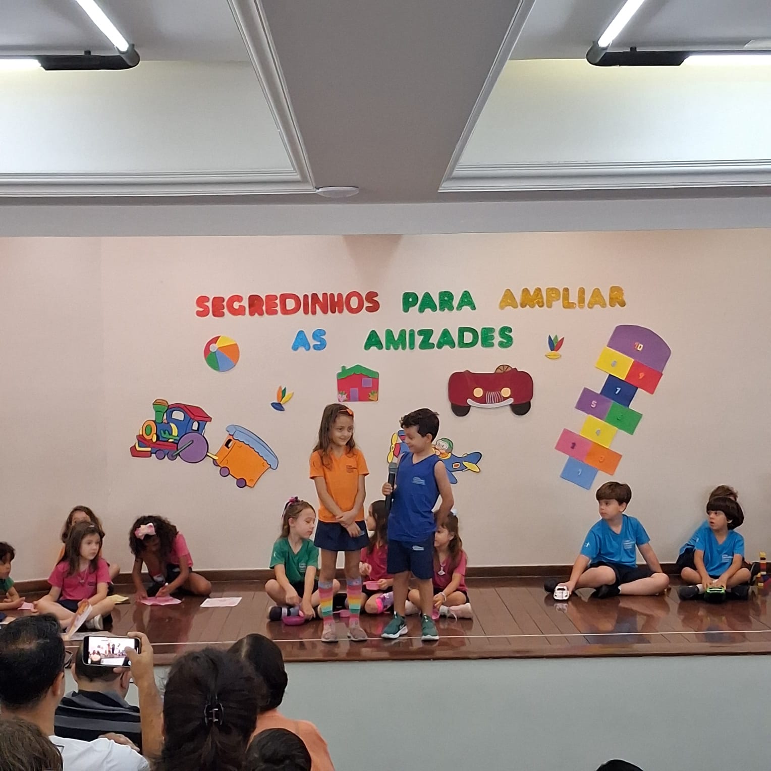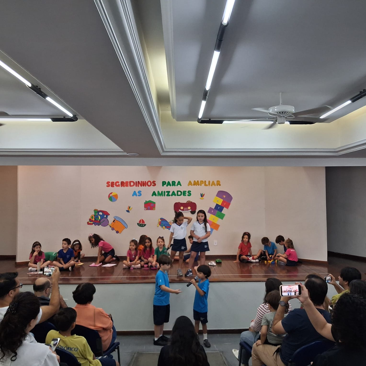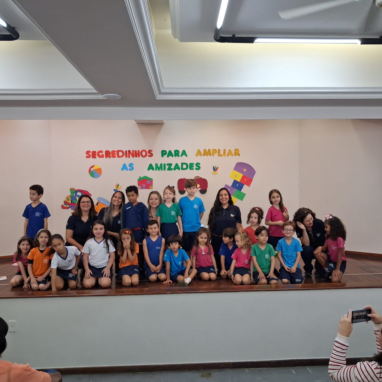 Culminando a etapa da Educação Infantil, a turma do Infantil 5 apresentou uma peça teatral inspirada no livro Segredinhos para Ampliar as Amizades, de Jaqueline Miotto Zolet. A atividade integrou diferentes áreas — Artes Cênicas, Música, Inglês e os estudos literários realizados em sala —, resultando em uma vivência interdisciplinar rica em aprendizado e significado.