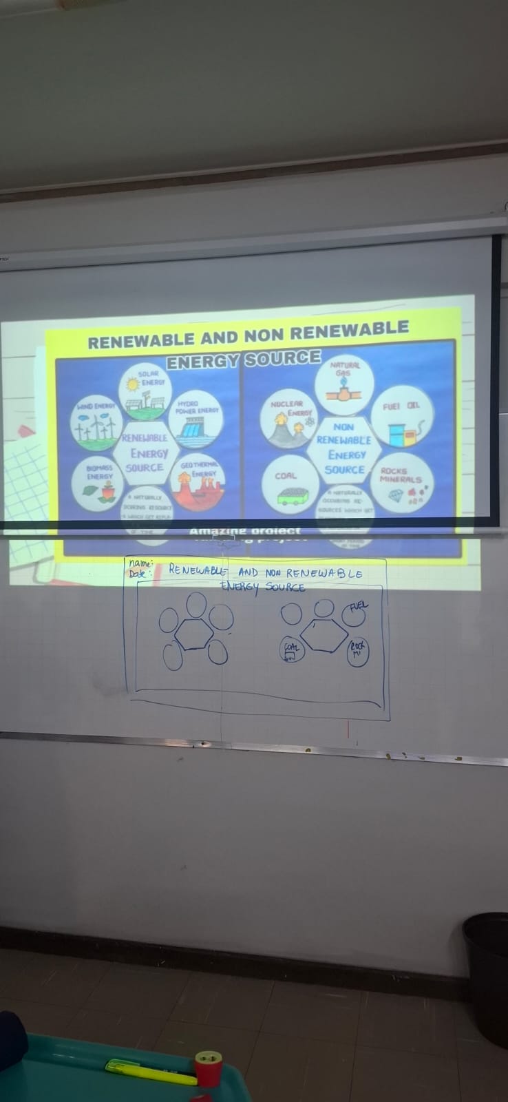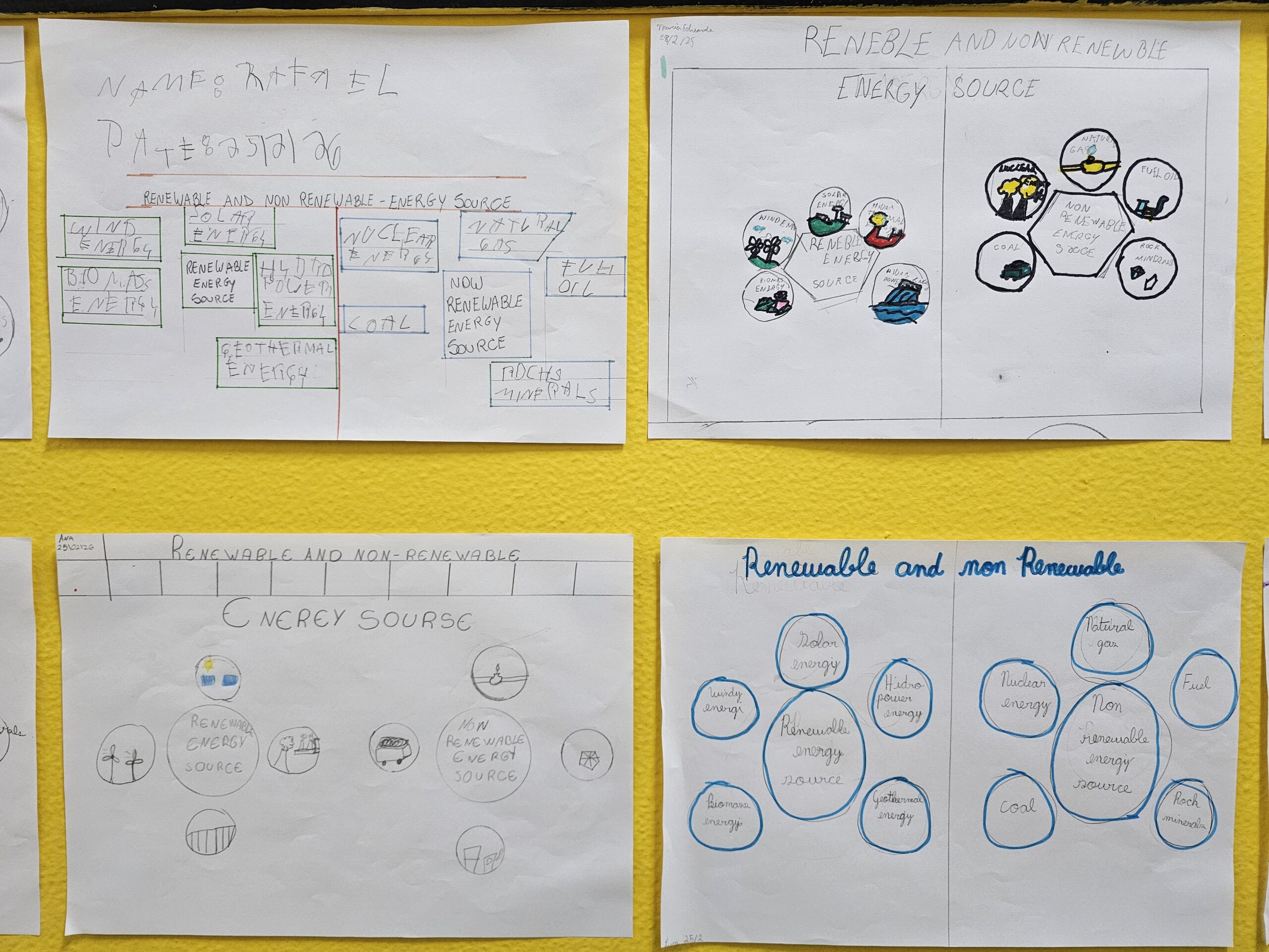 Os alunos do 5º Ano produziram um cartaz sobre renewable and non-renewable sources (fontes renováveis e não renováveis) e, por meio dessa atividade, puderam relembrar quais são alguns dos recursos naturais utilizados pelo ser humano e refletir sobre como fazemos uso deles no cotidiano.